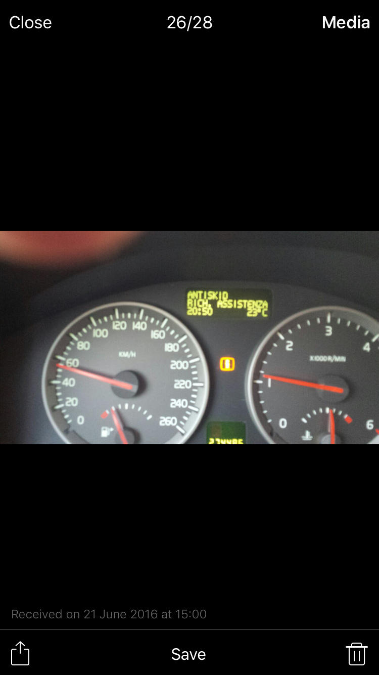 Atsitiko tokia bėda. Ypatingai prasideda kai oras karštas. Pridedu skydelio nuotraukas. Užgesina variklį ir nebeleidžia važiuot. Pastovi kažkiek laiko ir vėl viskas normaliai. Diagnostika nieko neparodo . Gal buvo panašiai kam nors kas panašaus? Volvo v-50 2004 metu 2l dyzelis